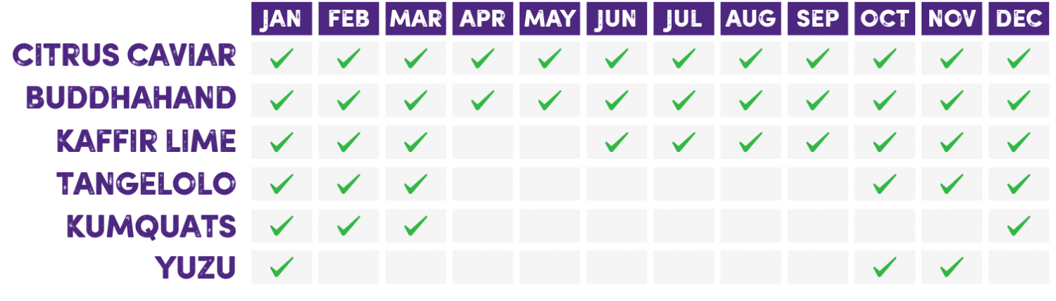 Nachstehend finden Sie den Verfügbarkeitskalender unserer Zitrusspezialitäten.