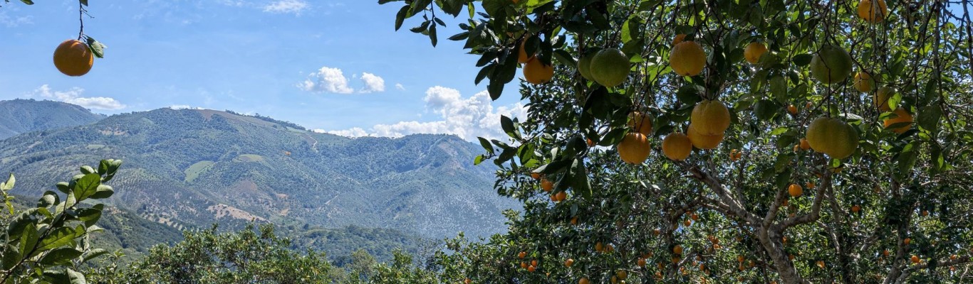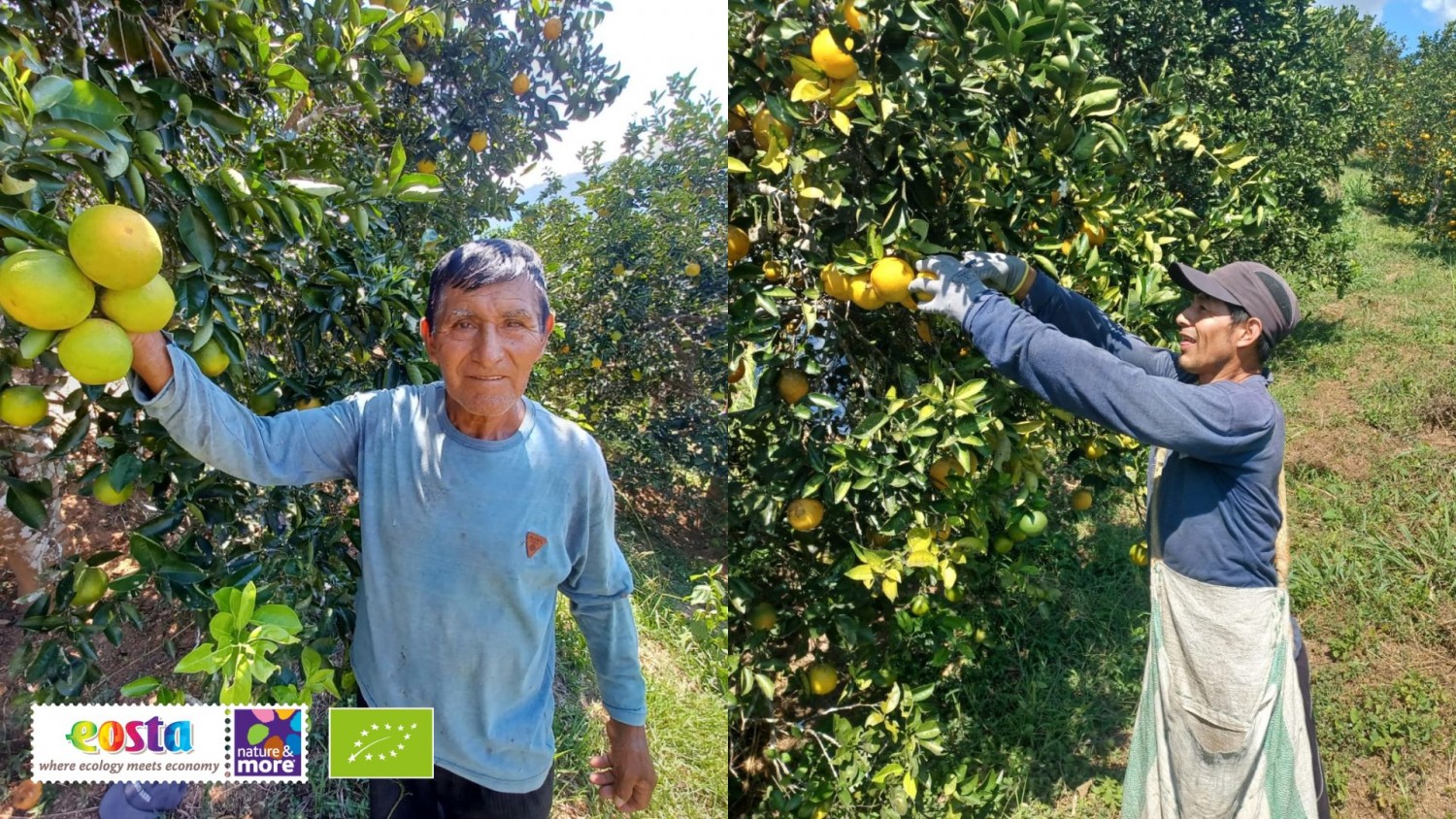 Onze Jucy Gold Sinaasappels groeien in het tropische Chanchamayo-dal in Peru. Door het kleine verschil tussen dag- en nachttemperaturen kleurt de schil lichter dan bij sinaasappels uit Europa of Zuid-Afrika. Dit heeft echter geen enkele invloed op de interne kwaliteit – die is uitstekend: sappig, zoet en smaakvol.